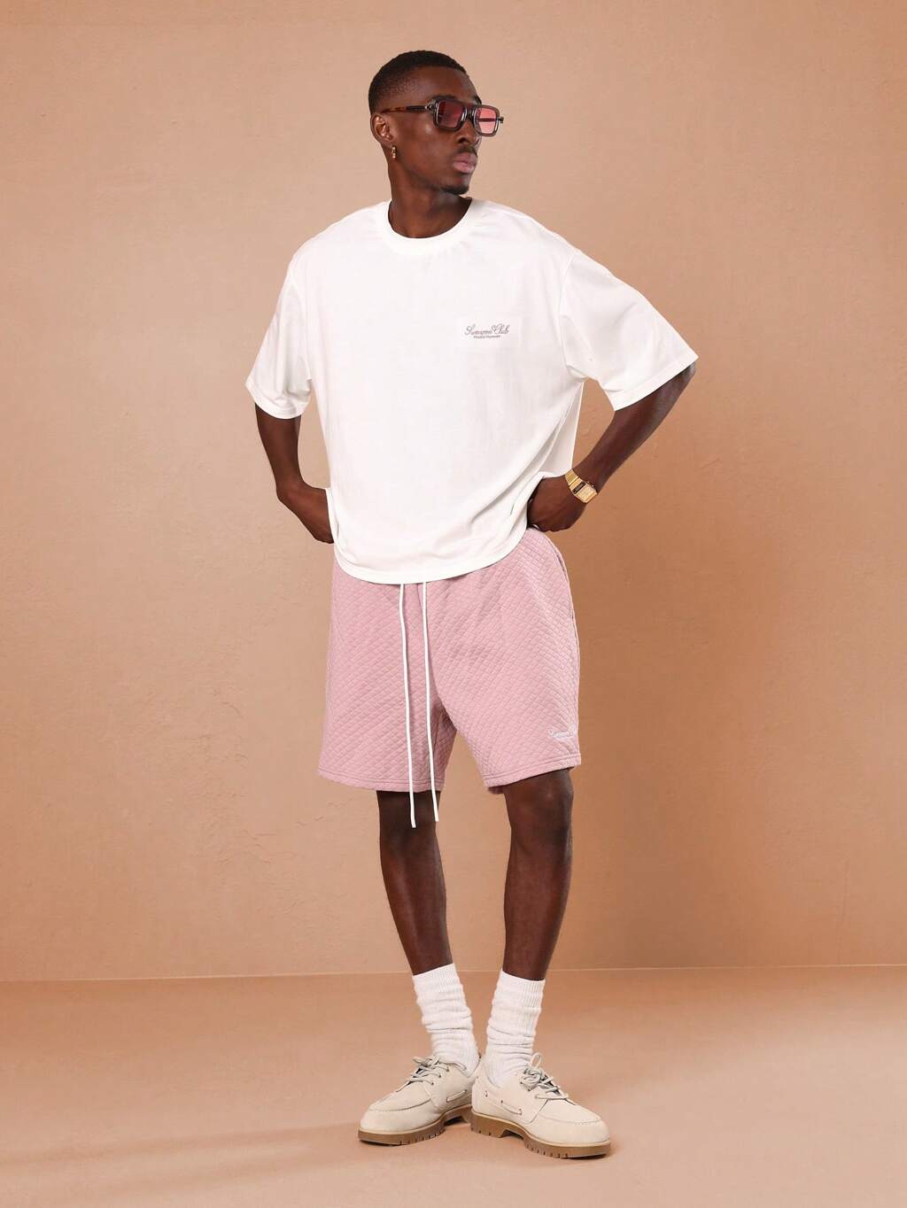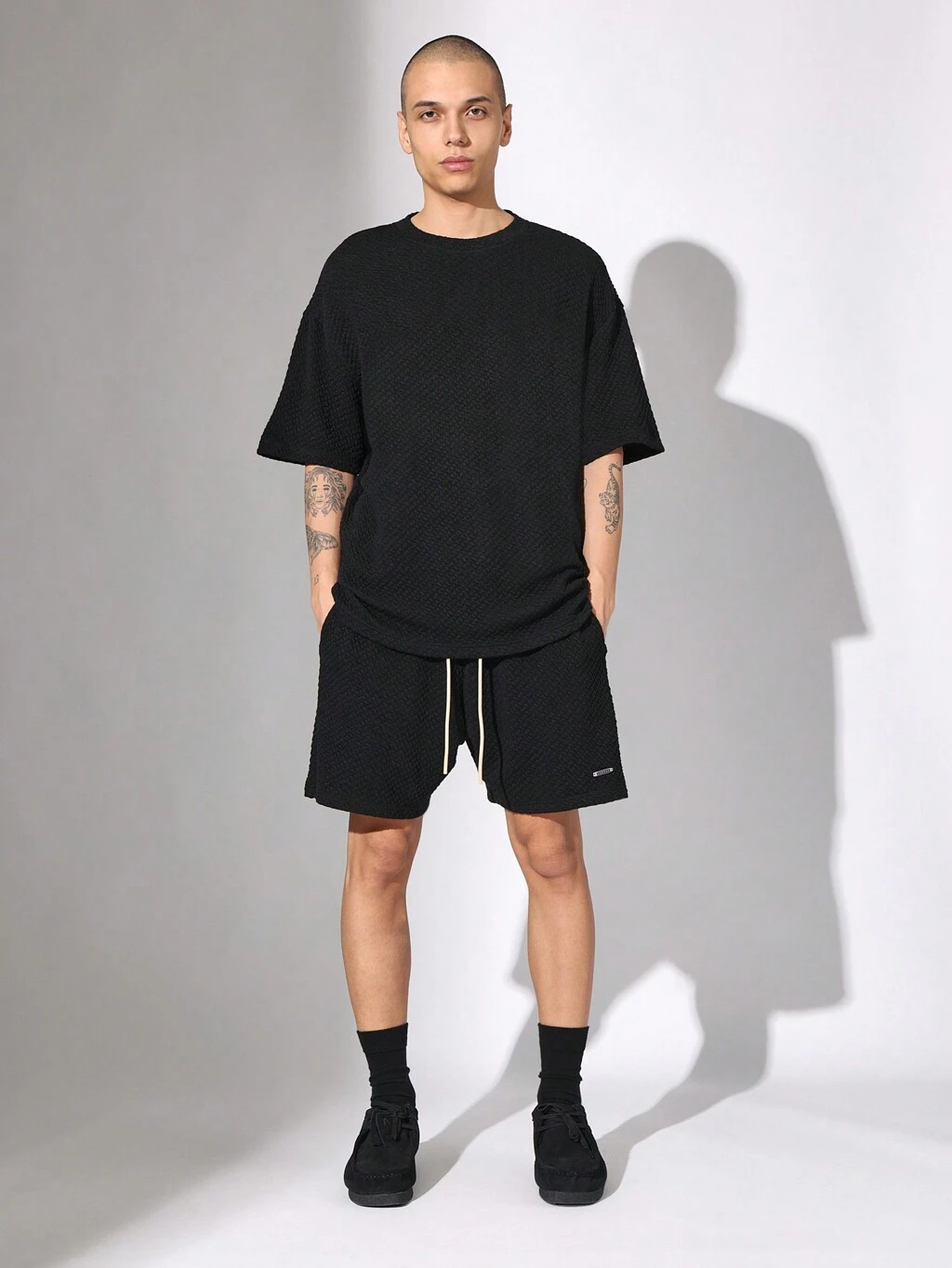 Pikowany, oversize'owy zestaw z krótkim rękawem i szortami