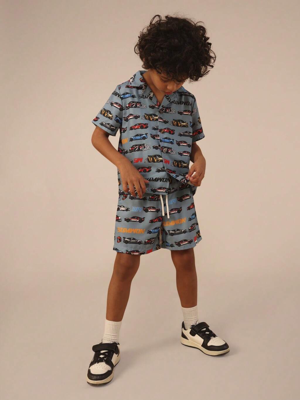 Komplet: koszulka i spodenki z nadrukiem samochodu wyścigowego