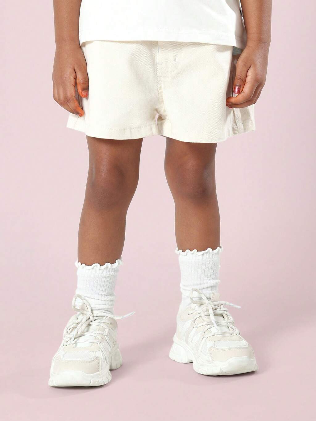 Szorty z tkaniny twill z kieszeniami w kształcie serca i prostym dołem