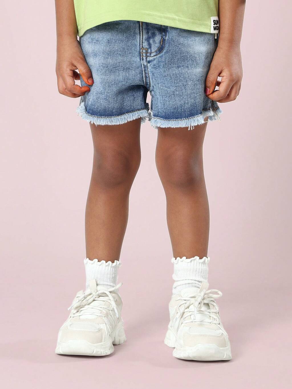 Szorty jeansowe z surowym obszyciem, postrzępionymi krawędziami i klasycznym krojem