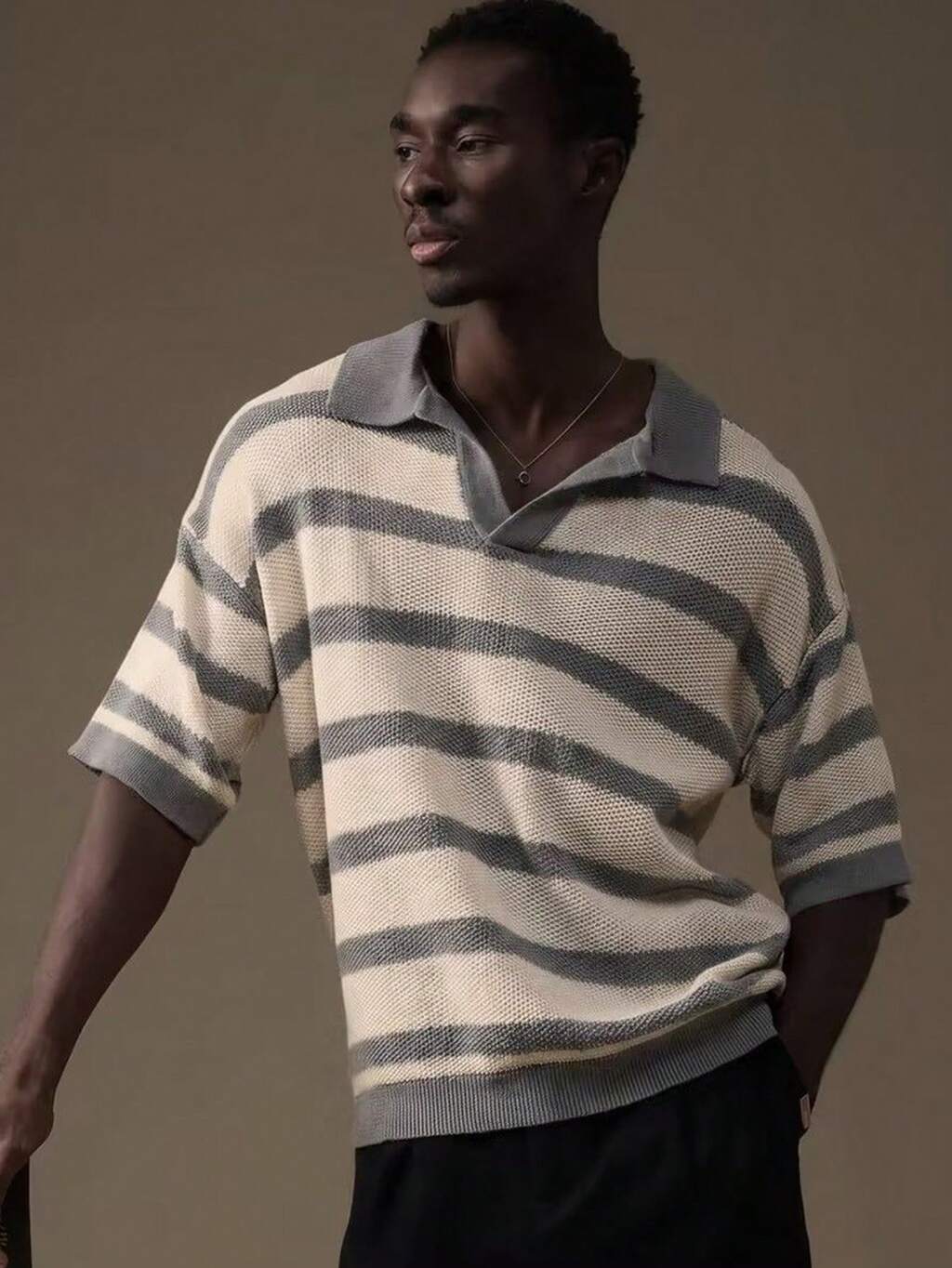 Męska dzianinowa koszulka polo w paski z kołnierzykiem i krótkimi rękawami, idealna na co dzień
