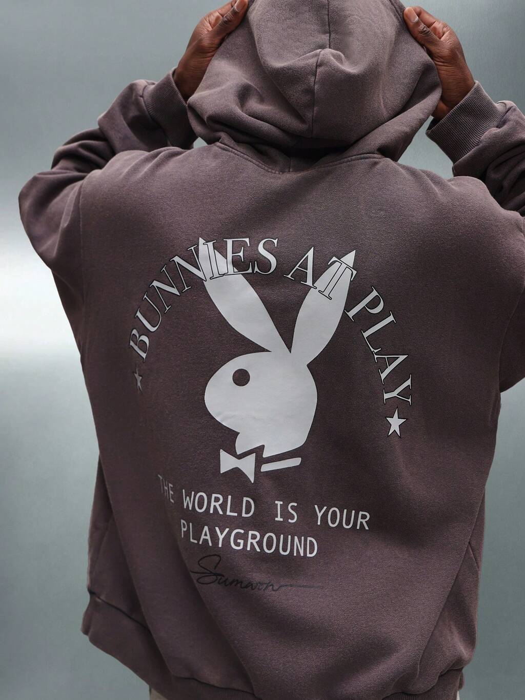 PLAYBOY X SUMWON Bluza z kapturem oversize ze ściągaczem i kieszenią