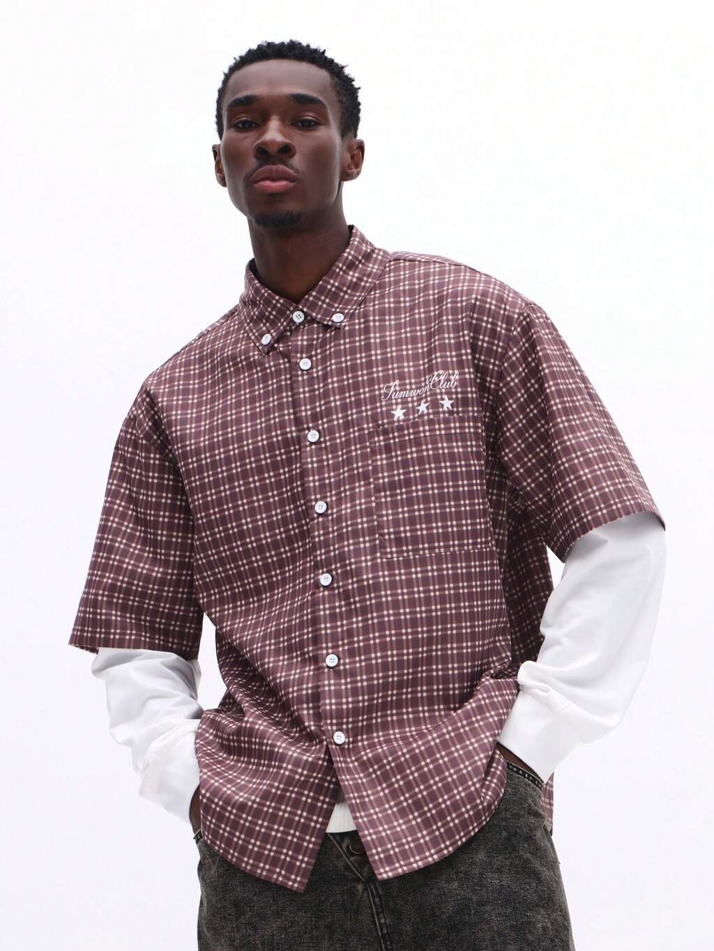 Koszula z krótkim rękawem, zapinana na guziki, w fasonie boxy, z nadrukiem w stylu retro