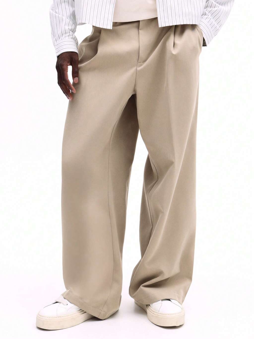 Beżowy komplet: koszula i szerokie spodnie