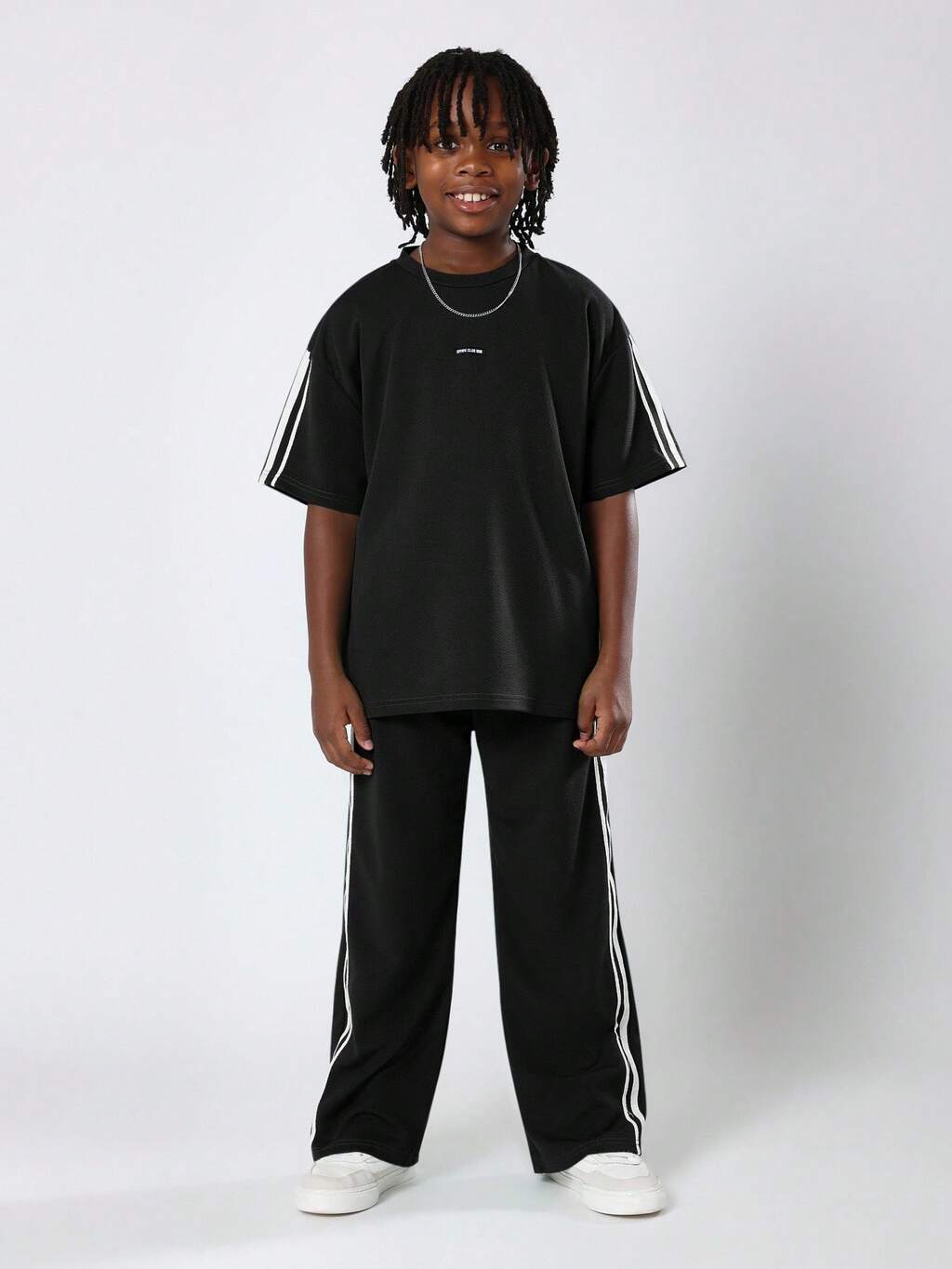 Conjunto de Camiseta Gráfica e Calça Combinando para Meninos Pré-Adolescentes com Estampa de Número, Roupa Casual de Descanso para Uso Escolar e de Final de Semana