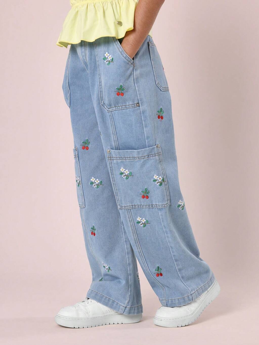 Calça Denim cargo vintage lavada com listras laterais e punhos