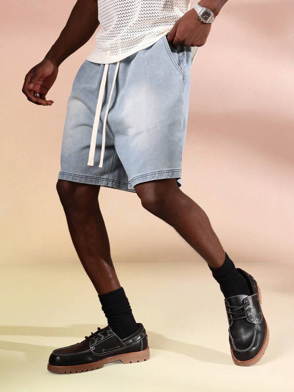 Shorts Denim folgados na altura do joelho, estilo Denim lavado.