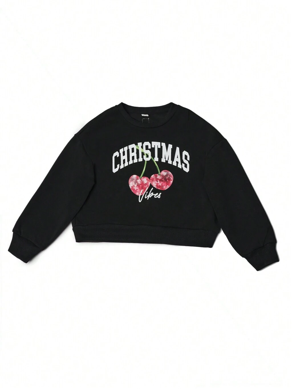 Moletom curto com estampa de cereja e bola de discoteca com glitter