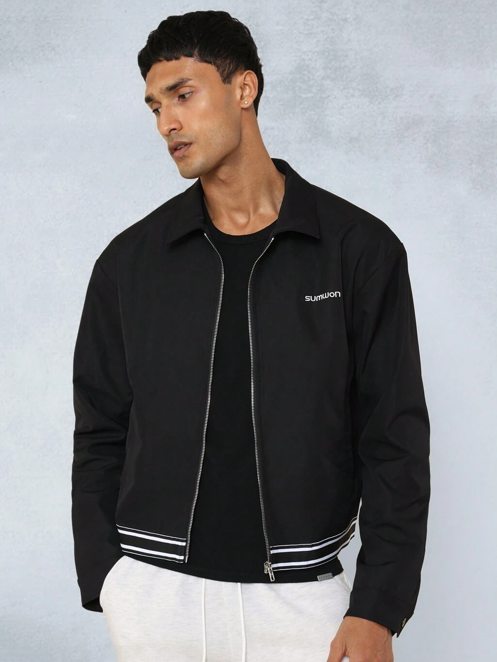 Jaqueta bomber leve com gola e zíper frontal