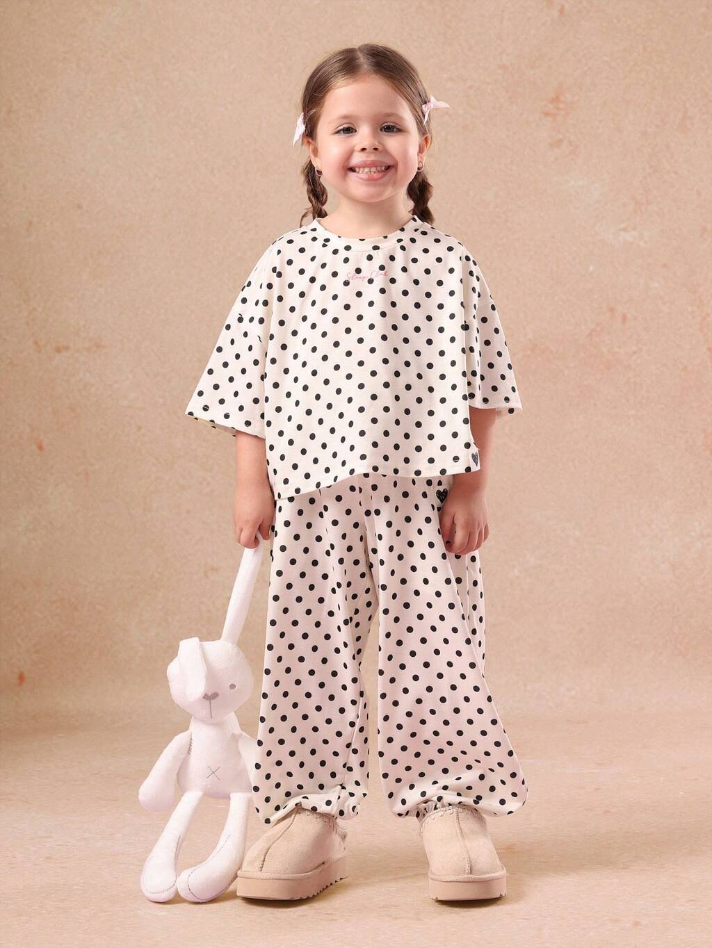 Conjunto de pijama de bolinhas com ajuste solto e calças largas