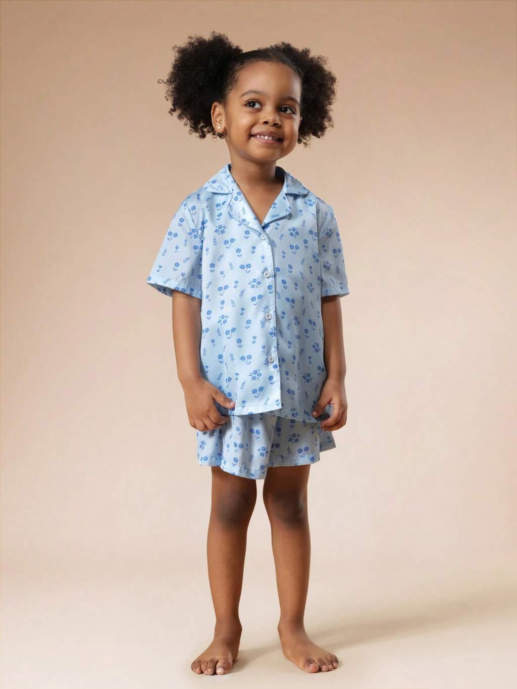 Conjunto de pijama infantil de manga curta com botões macios