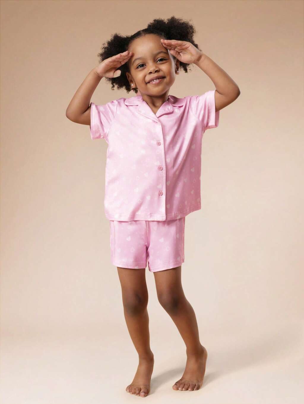 Conjunto de pijama com botões e estampa de coração